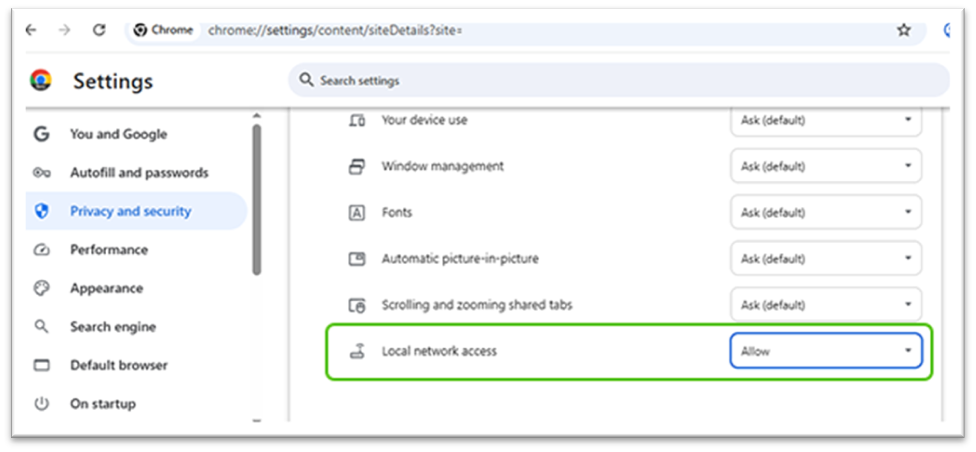 When you see the permission prompt, simply click “Allow” to grant local network access. Your browser will remember your choice, so you won’t need to do this again.